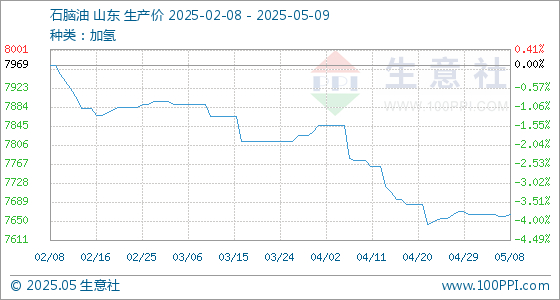 5月9日生意社石脑油基准价为7664.00元/吨