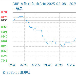 5月9日,生意社DBP基准价为7995.00元/吨,与本月初(8135.00元/吨)相比,下降了-1.72%。