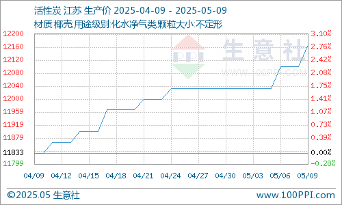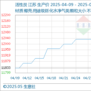 据生意社商品行情分析系统监测:周初活性炭价格为12033元/吨,周末活性炭价格为12166/吨,价格上涨1.11%。