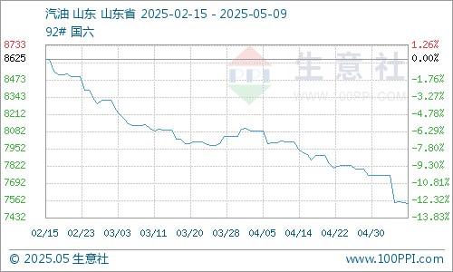 据生意社商品行情分析系统,5月上旬山东地炼汽柴油价格行情小幅下滑,截止9日国内92#汽油价格为7540.5元/吨,价格下滑2.73%;国内0#柴油价格为6440.67元/吨,价格走势下滑1.23%。