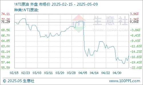 5月上旬国际油价行情走势震荡为主,截止8日,美国WTI原油期货主力合约结算价报59.91美元/桶,布伦特原油期货主力合约结算价报62.84美元/桶。五一期间国际油价大幅走低,主要原因是欧佩克+增加产量超预期,该消息利空国际油价,原油市场大幅走低。五一后随着美国加大对某国的石油限制问题,以及巴以冲突,中美有意进行商谈等问题影响,国际油价走势上涨,整体来看5月上旬国际油价维持低位震荡为主,原油支撑弱势,国内汽柴油价格行情低迷。