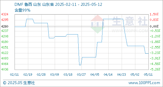 5月12日,生意社DMF基准价为4120.00元/吨,与本月初(4160.00元/吨)相比,下降了-0.96%。