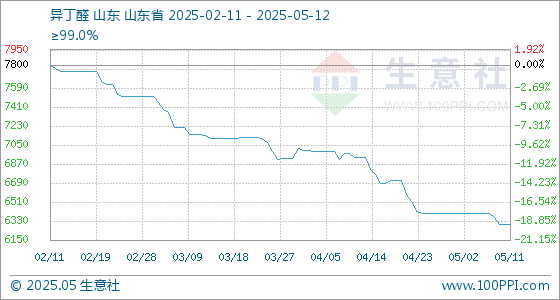 5月12日生意社异丁醛基准价为6300.00元/吨