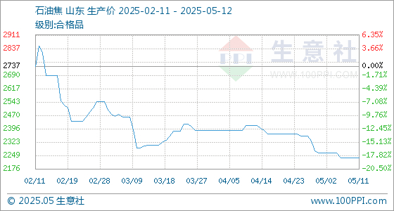 5月12日生意社石油焦基准价为2237.50元/吨