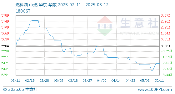 5月12日,生意社燃料油基准价为5470.00元/吨,与本月初(5462.50元/吨)相比,上涨了0.14%。