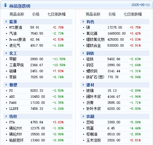 生意社:大宗商品数据每日题材(2025年5月12日)