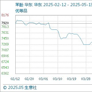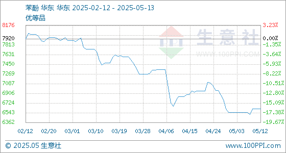 5月13日生意社苯酚基准价为6613.33元/吨
