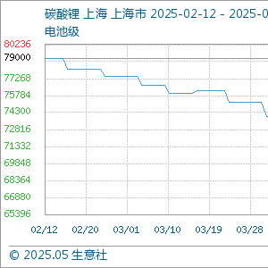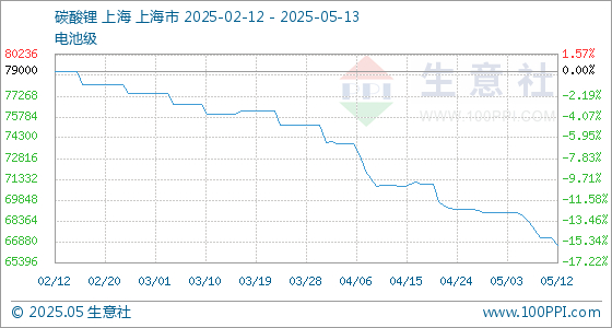 5月13日生意社碳酸锂(电池级)基准价为66633.33元/吨