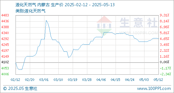 5月13日生意社液化天然气基准价为4296.00元/吨