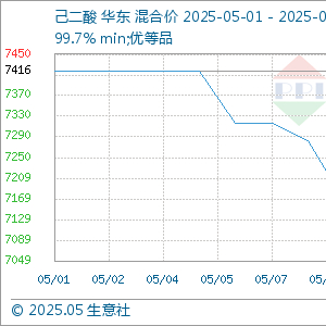 据生意社商品行情分析系统显示:五一节后,利空因素打压,国内己二酸行情跌跌不休,跌幅超4%。5月1日,己二酸市场均价7416元/吨,5月13日,国内己二酸市场均价7083元/吨,下跌4.49%。