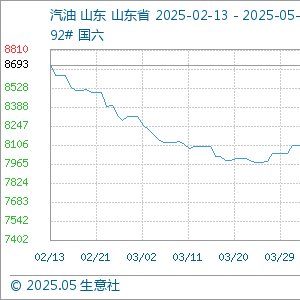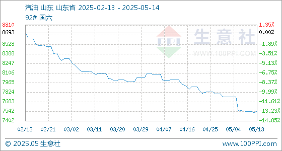5月14日,生意社汽油基准价为7536.17元/吨,与本月初(7752.50元/吨)相比,下降了-2.79%。