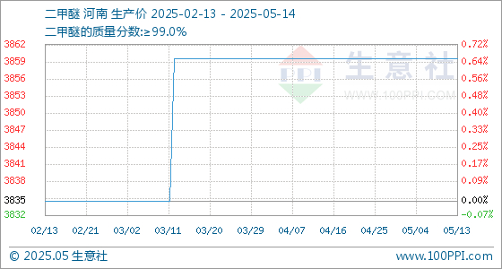 5月14日生意社二甲醚基准价为3860.00元/吨