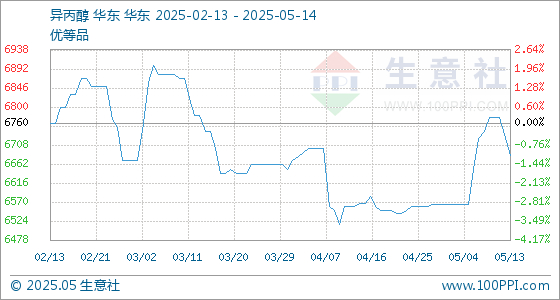 5月14日生意社异丙醇基准价为6683.34元/吨