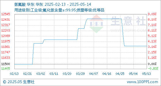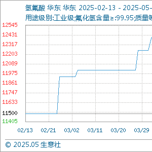 5月14日生意社氢氟酸基准价为11883.33元/吨