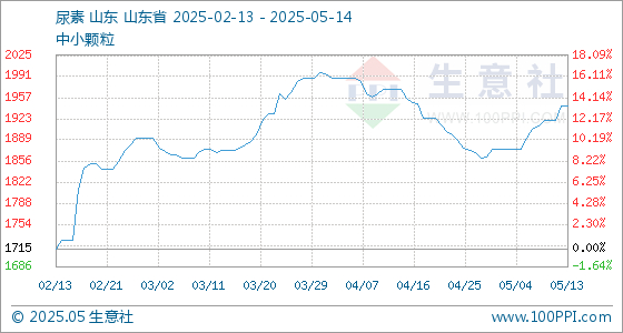5月14日,生意社尿素基准价为1945.00元/吨,与本月初(1875.00元/吨)相比,上涨了3.73%。