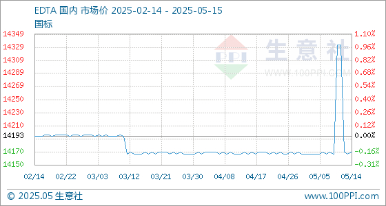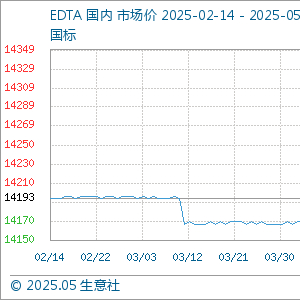 5月15日生意社EDTA基准价为14169.33元/吨 生意社-大宗商品数据商 上海生意社信息服务有限公司官方账号 2025.05.1508:30 关注 生意社05月15日讯 5月15日,生意社EDTA基准价为14169.33元/吨,与本月初(14166.67元/吨)相比,上涨了0.02%。 (文章来源:生意社)