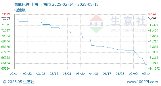5月15日生意社氢氧化锂(电池级)基准价为65966.67元/吨