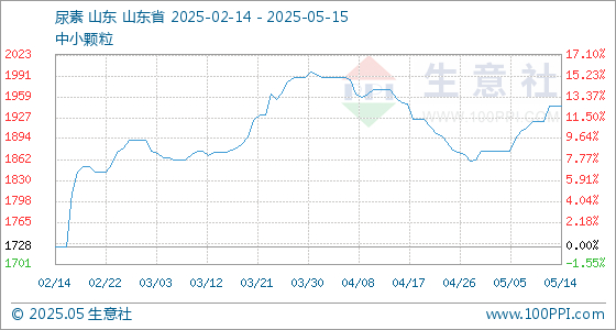 5月15日,生意社尿素基准价为1945.00元/吨,与本月初(1875.00元/吨)相比,上涨了3.73%。