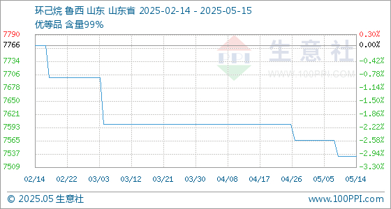 5月15日,生意社环己烷基准价为7533.33元/吨,与本月初(7566.67元/吨)相比,下降了-0.44%。