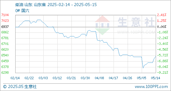 5月15日,生意社柴油基准价为6529.17元/吨,与本月初(6520.83元/吨)相比,上涨了0.13%。