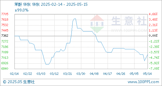 5月15日生意社苯酐基准价为7066.67元/吨