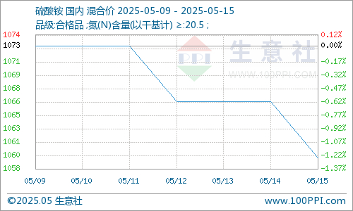 生意社:需求不佳 硫酸铵市场价格下跌(5.9-5.15)