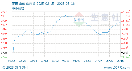 5月16日,生意社尿素基准价为1946.67元/吨,与本月初(1875.00元/吨)相比,上涨了3.82%。