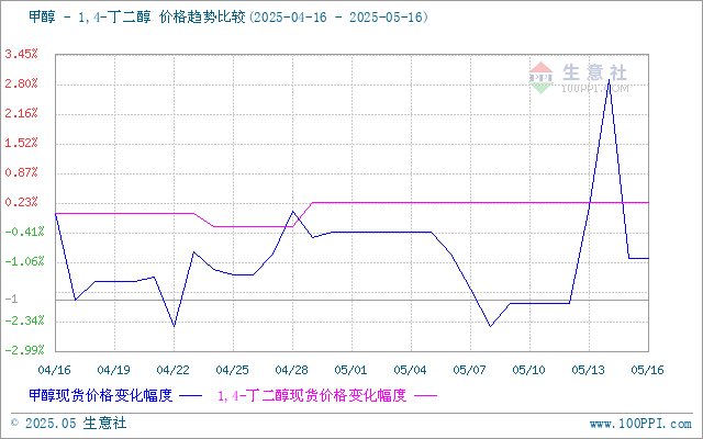 生意社甲醇(上游原料)-BDO价格走势比较图: