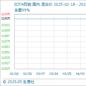 5月19日,生意社EDTA四钠基准价为11825.00元/吨,与本月初(11925.00元/吨)相比,下降了-0.84%。