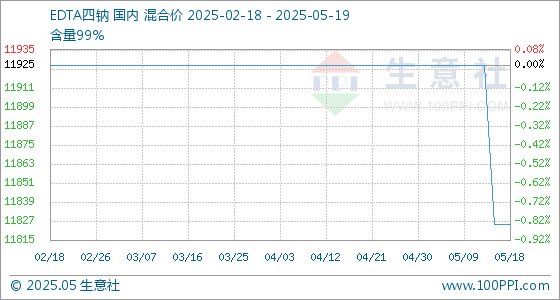 5月19日生意社EDTA四钠基准价为11825.00元/吨