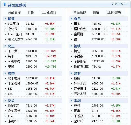 生意社:大宗商品数据每日题材(2025年5月19日)