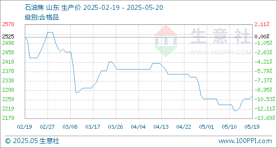 5月20日,生意社石油焦基准价为2275.00元/吨,与本月初(2262.50元/吨)相比,上涨了0.55%。