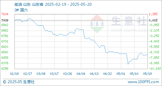 5月20日生意社柴油基准价为6518.50元/吨