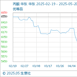 5月20日,生意社丙酮基准价为5706.67元/吨,与本月初(5750.00元/吨)相比,下降了-0.75%。