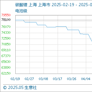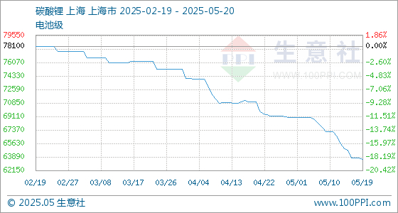 5月20日生意社碳酸锂(电池级)基准价为63600.00元/吨