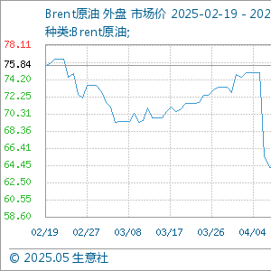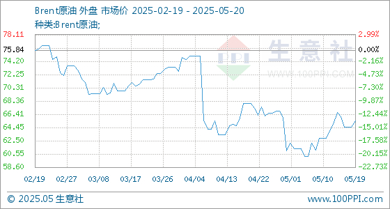 5月20日生意社Brent原油基准价为65.41美元/桶