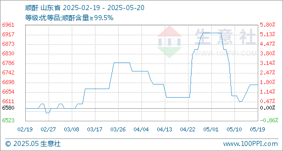 5月20日生意社顺酐基准价为6687.50元/吨