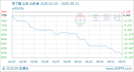 5月21日生意社异丁醛基准价为6050.00元/吨