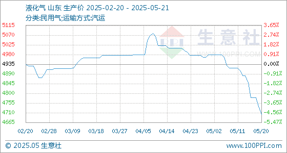 5月21日生意社液化气基准价为4702.50元/吨