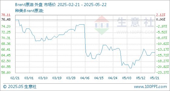 5月22日生意社Brent原油基准价为65.38美元/桶