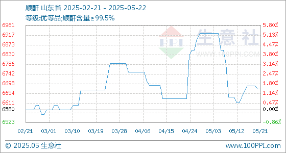 5月22日生意社顺酐基准价为6675.00元/吨