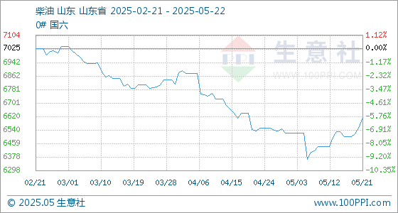 5月22日,生意社柴油基准价为6614.50元/吨,与本月初(6520.83元/吨)相比,上涨了1.44%。