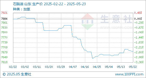 5月23日生意社石脑油基准价为7686.50元/吨