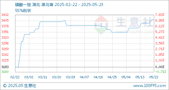 5月23日生意社磷酸一铵基准价为3410.00元/吨