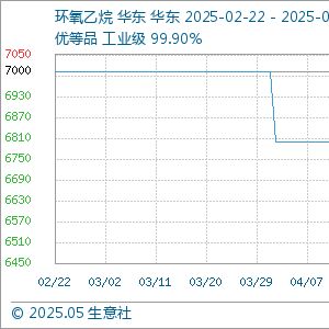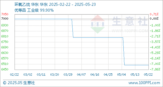 5月23日,生意社环氧乙烷基准价为6500.00元/吨,与本月初(6800.00元/吨)相比,下降了-4.41%。