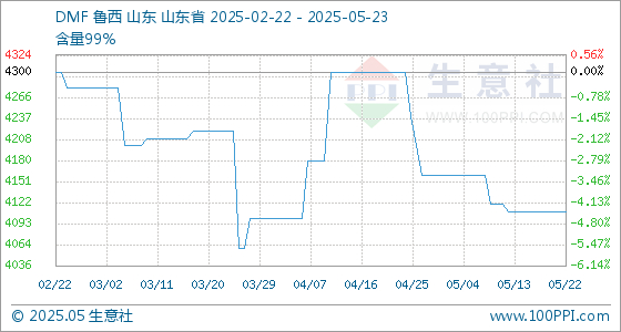5月23日,生意社DMF基准价为4110.00元/吨,与本月初(4160.00元/吨)相比,下降了-1.20%。