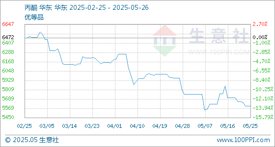 5月26日生意社丙酮基准价为5600.00元/吨