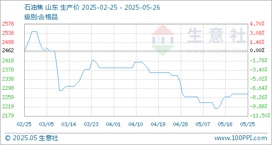 5月26日,生意社石油焦基准价为2275.00元/吨,与本月初(2262.50元/吨)相比,上涨了0.55%。