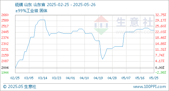 5月26日生意社硫磺基准价为2474.33元/吨
