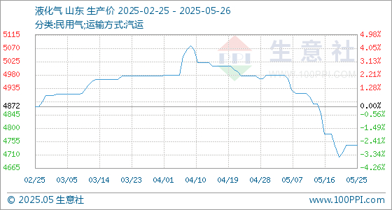 5月26日生意社液化气基准价为4742.50元/吨